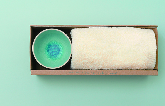 くつろぎのひとときを楽しむためのカップとタオルのセットです。