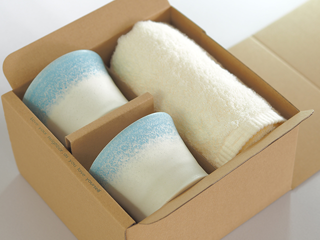 ラニカイカップペア と オーガニックコットンフェイスタオル(レモンホワイト)